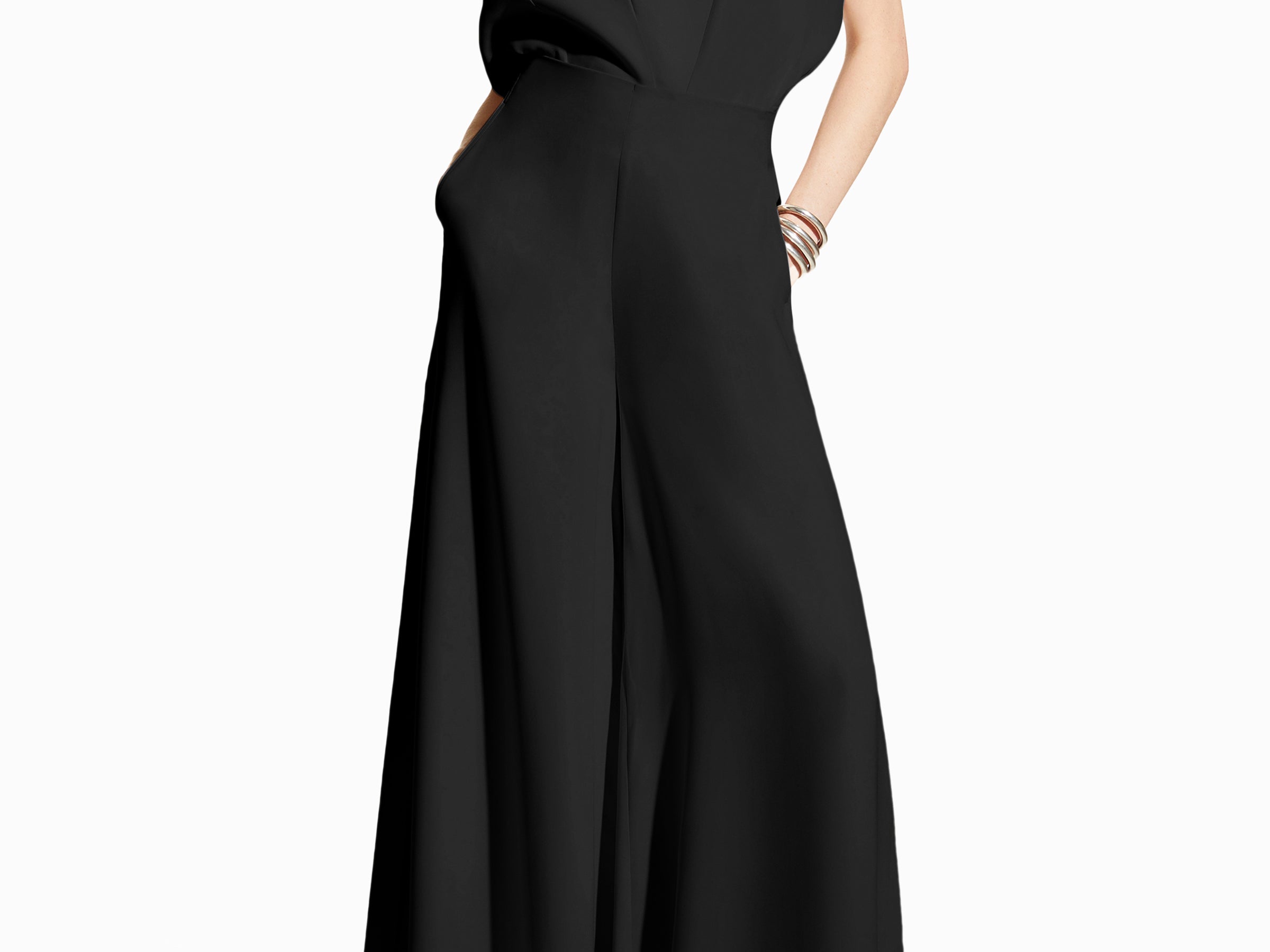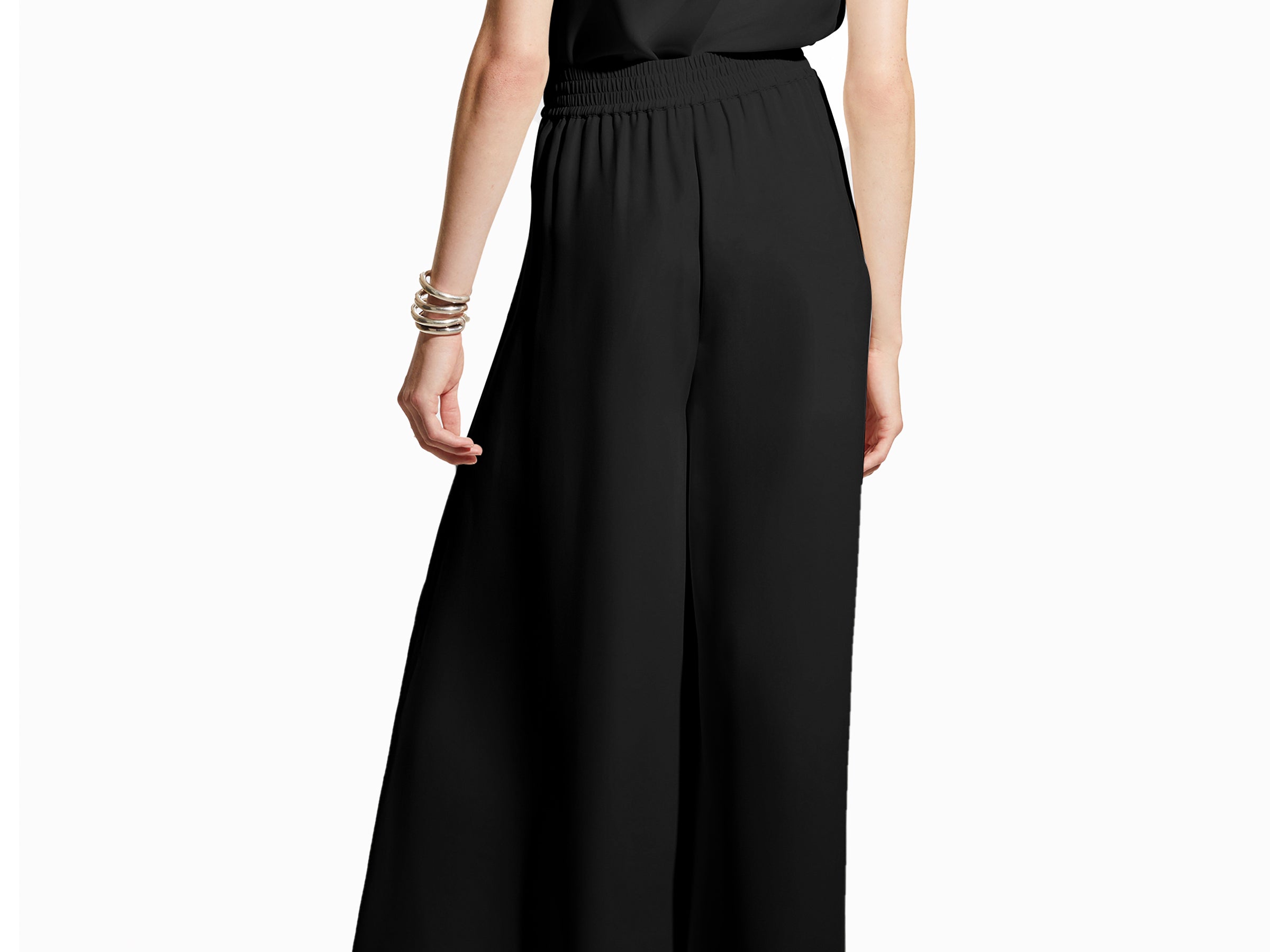 Extra long palazzo pants in double layers of 100% Double Silk Georgette, featuring wide leg openings, inseam side pockets and elasticated waistband to ensure a comfortable fit.