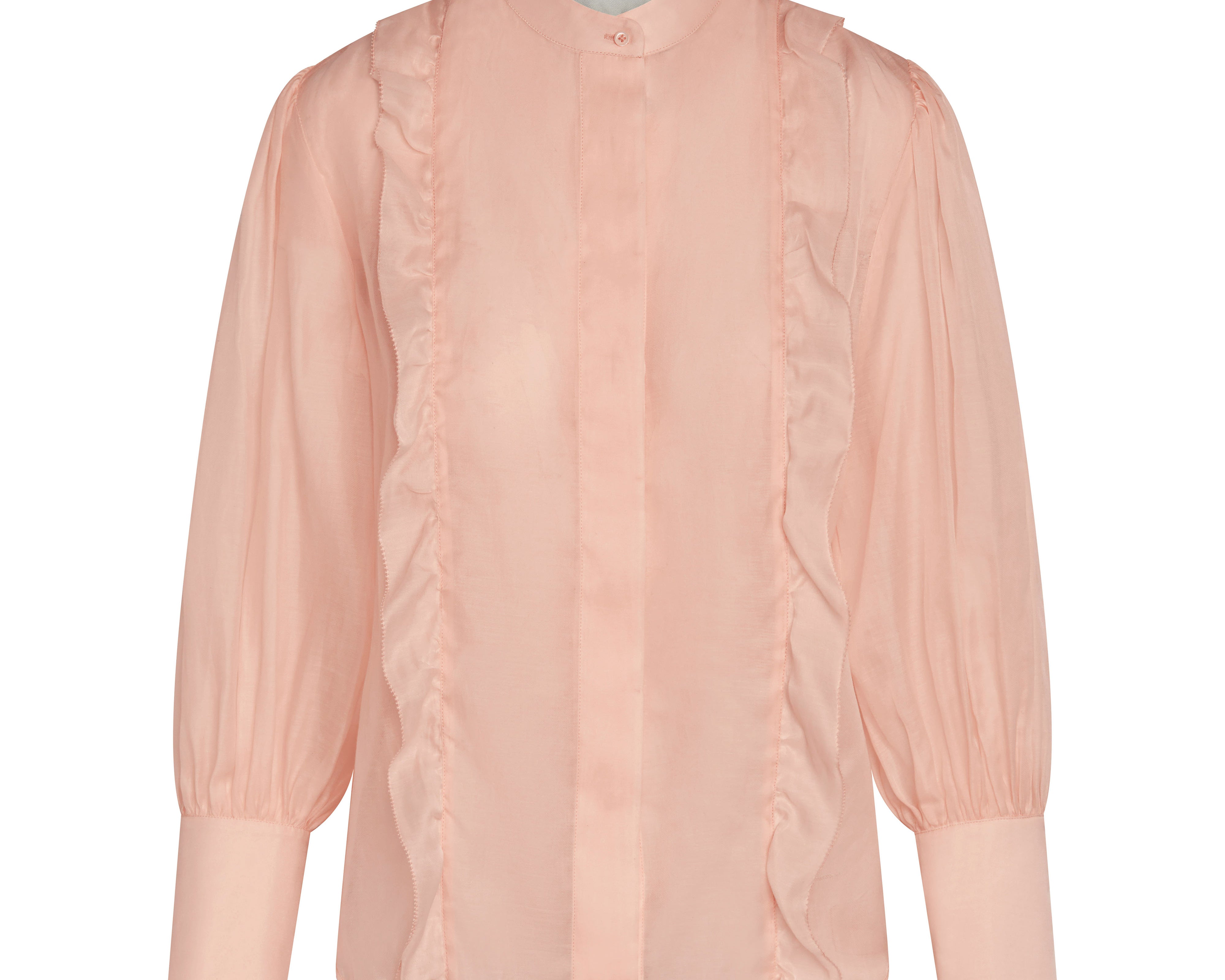 SILK RUFFLE DETAIL BUTTON DOWN TOP | Sorbet