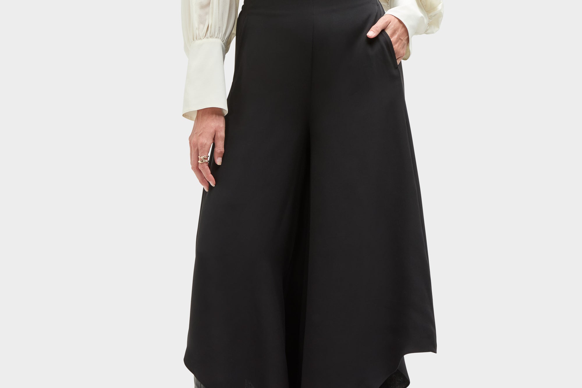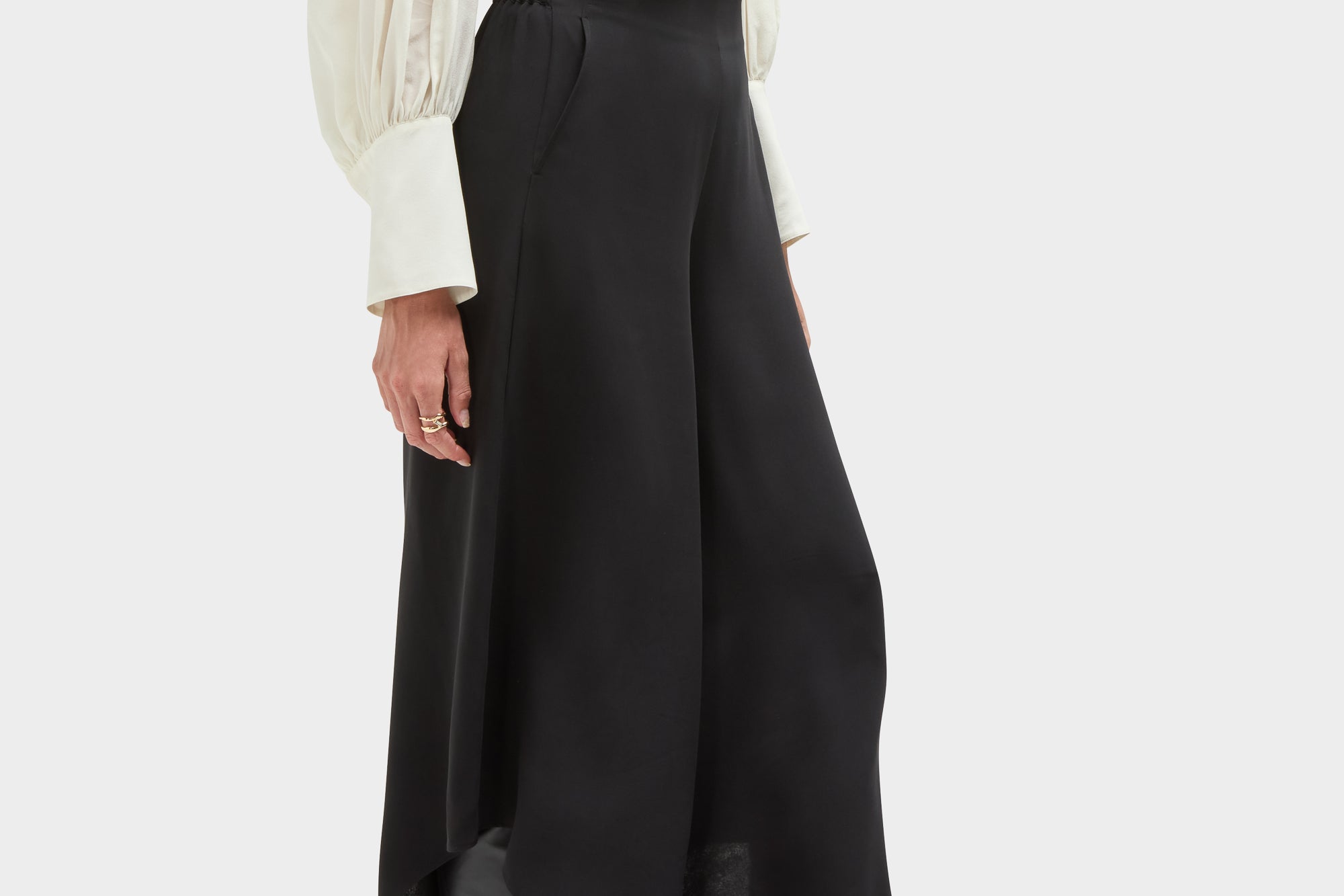 SILK ASYMMETRICAL PALAZZO PANT | Black