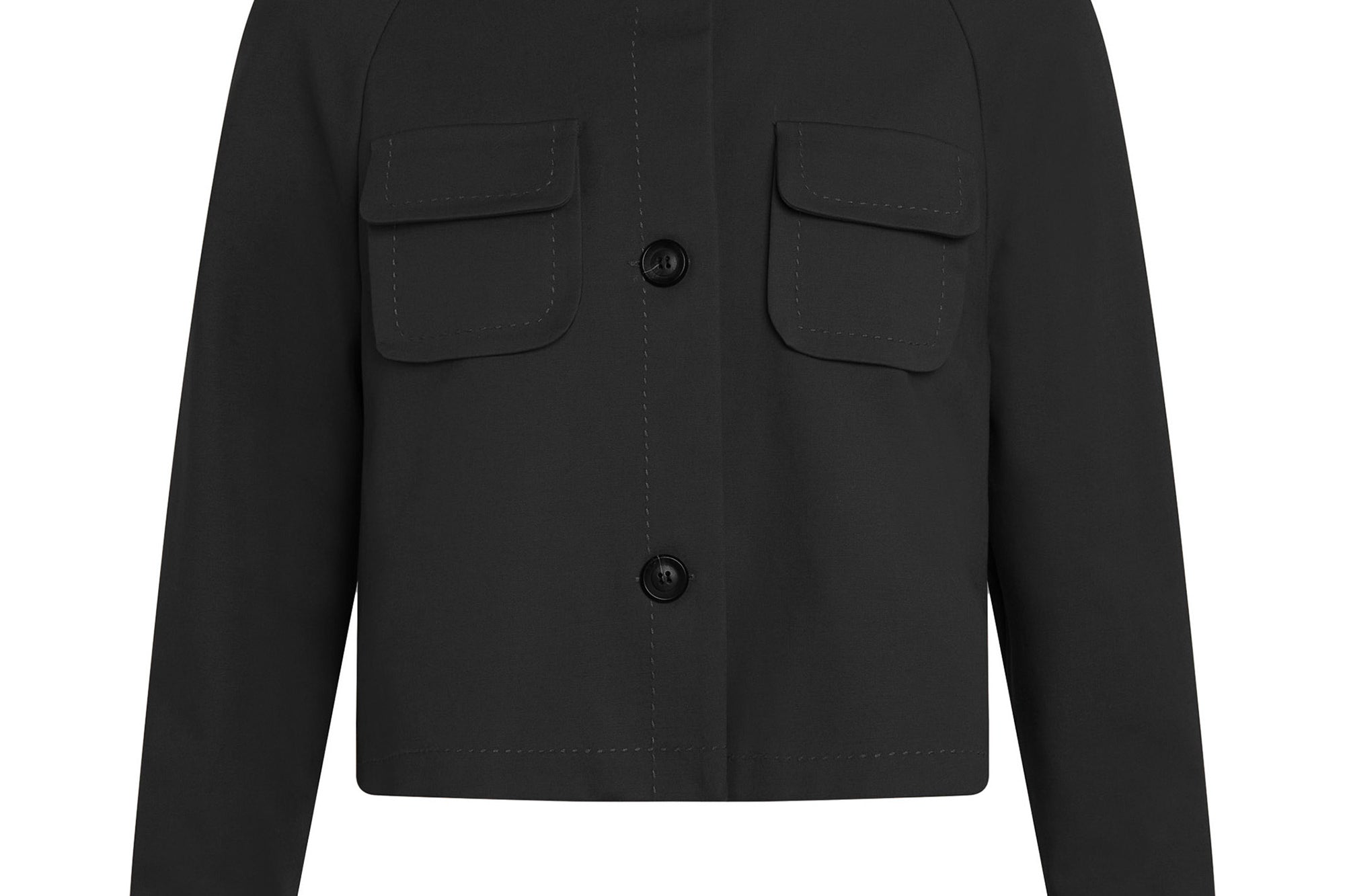 Cut in a sturdy stretch cotton, the Monroe cropped box jacket has a slight trapeze silhouette with patch pocket details.