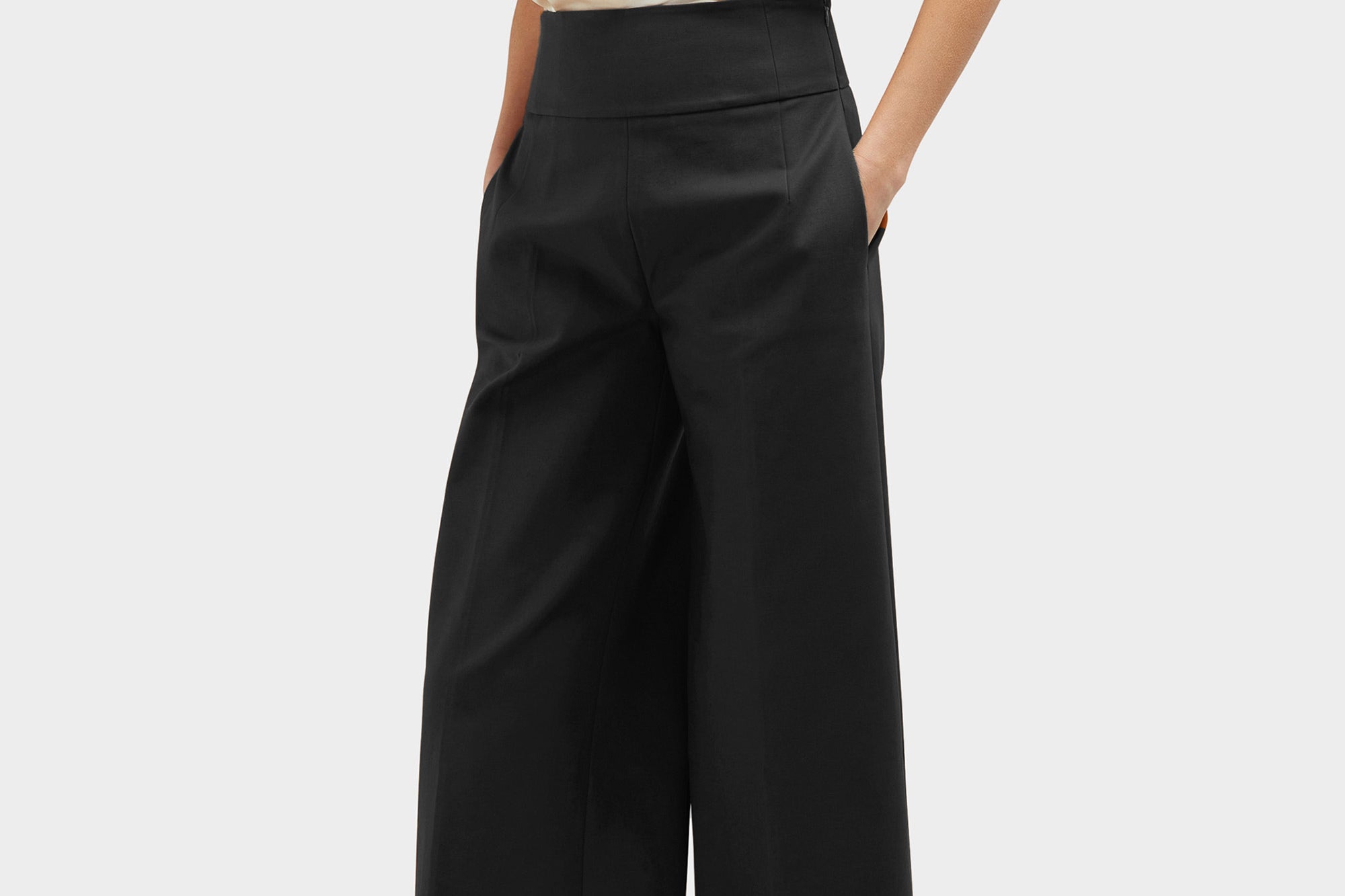 The Nell wide-leg stovepipe pants flaunt a sleek high-rise fit. Banded at the waist, the Nell pants feature a side zip and are crafted in our signature stretch cotton.