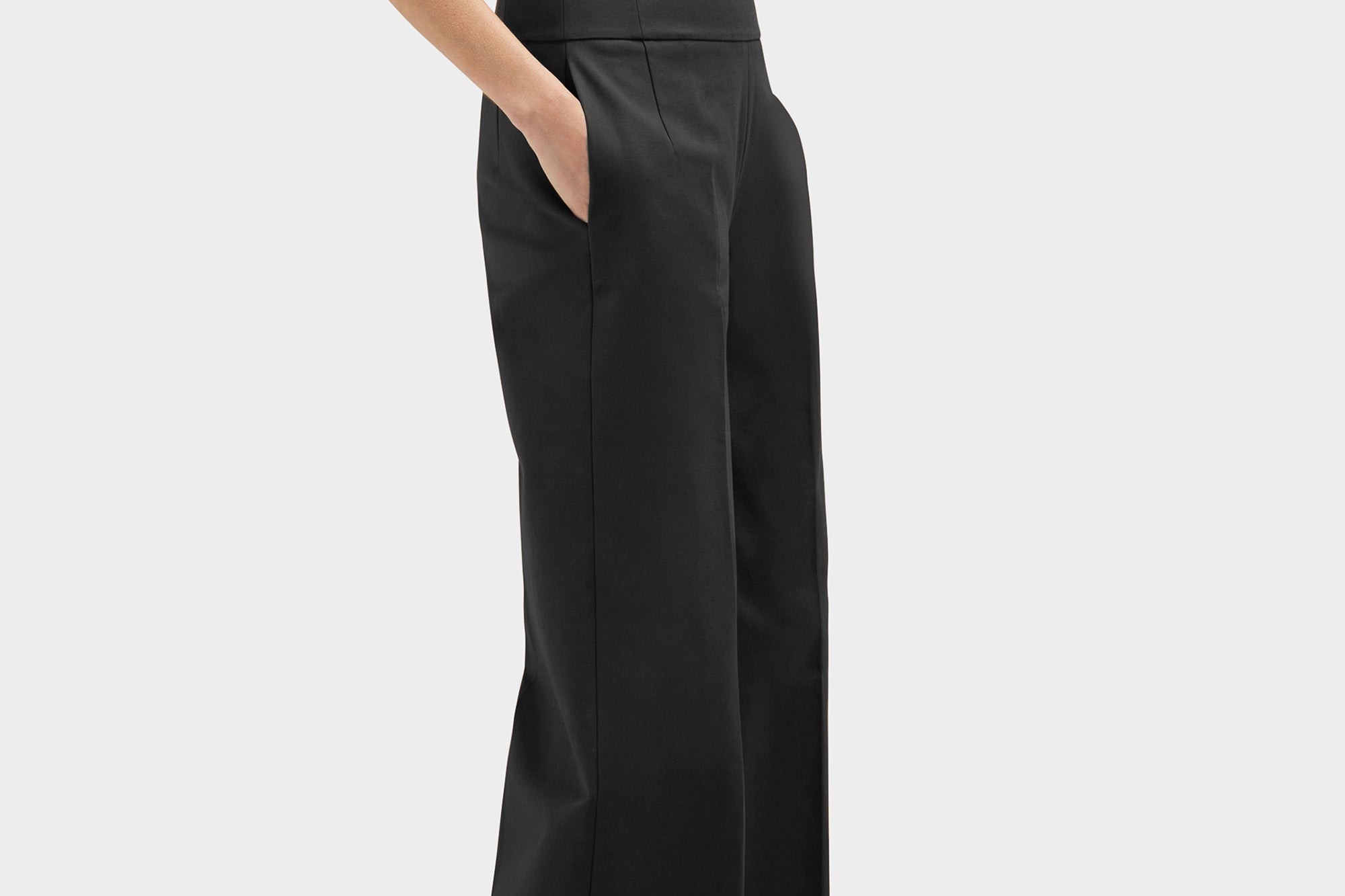 COTTON WIDE LEG STRETCH PANT | BLACK