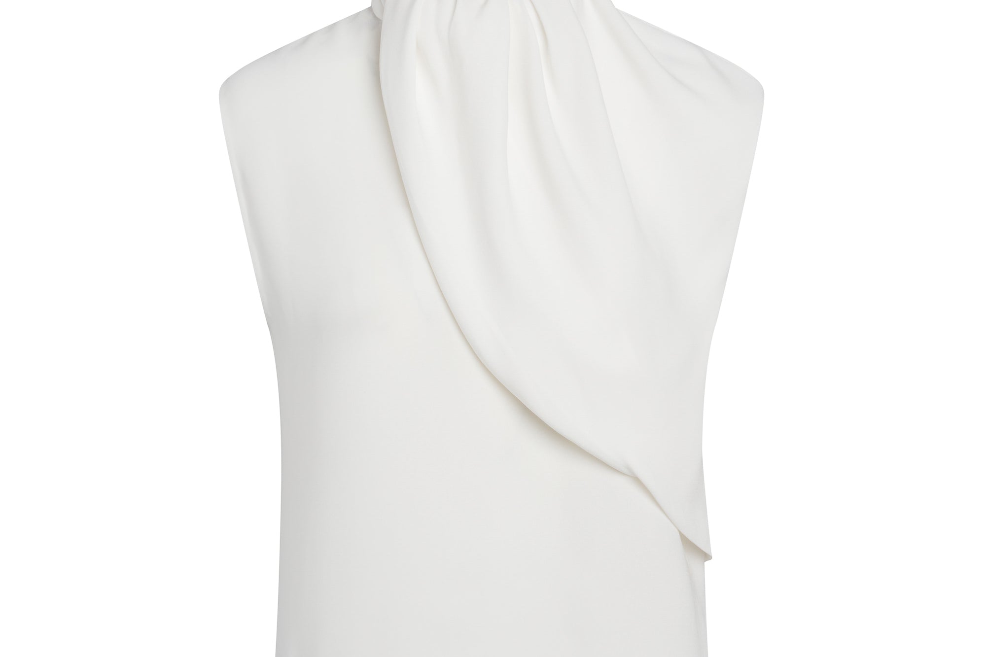 SILK DRAPED NECK SLEEVELESS TOP | BRILLIANT WHITE