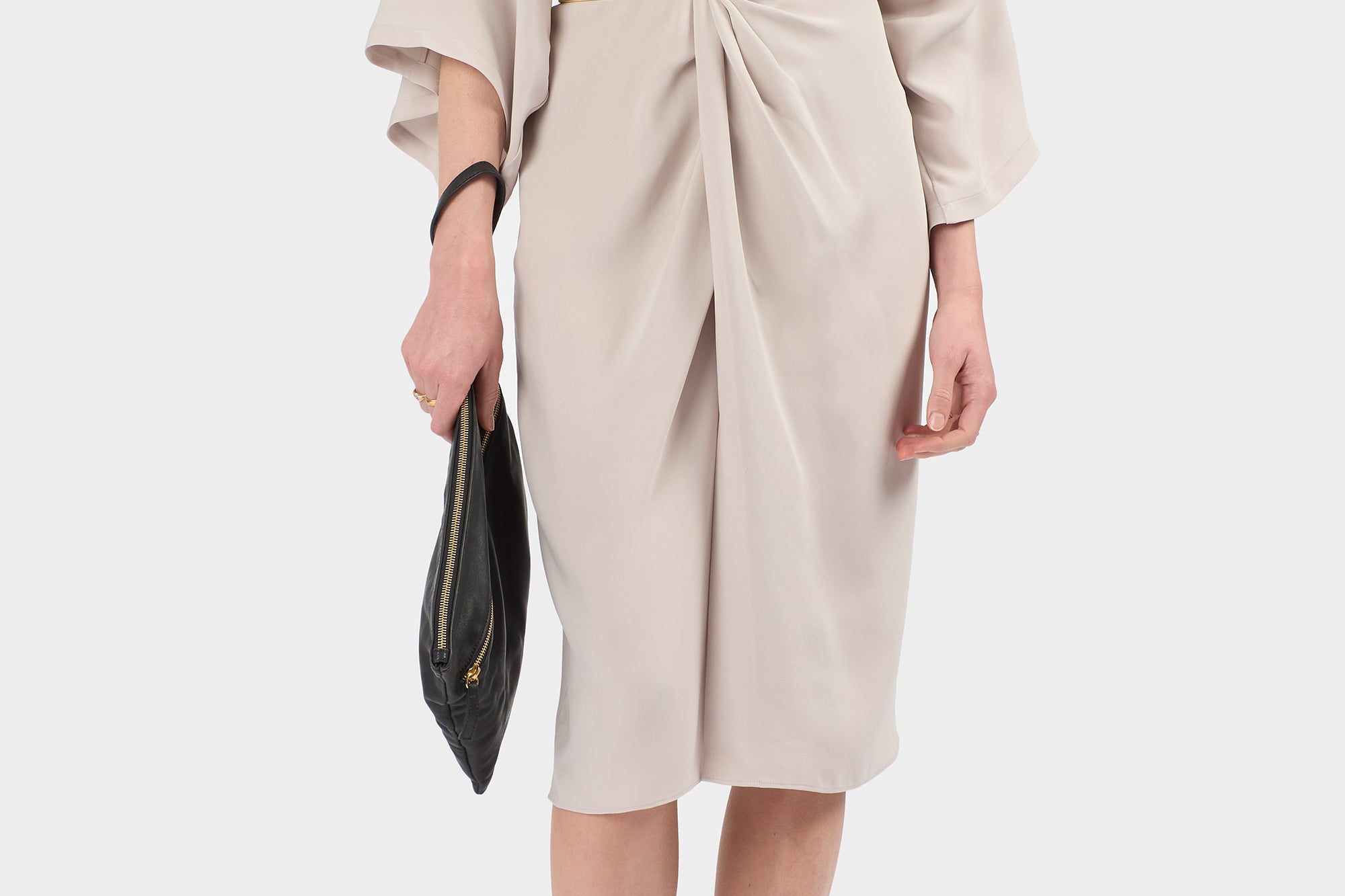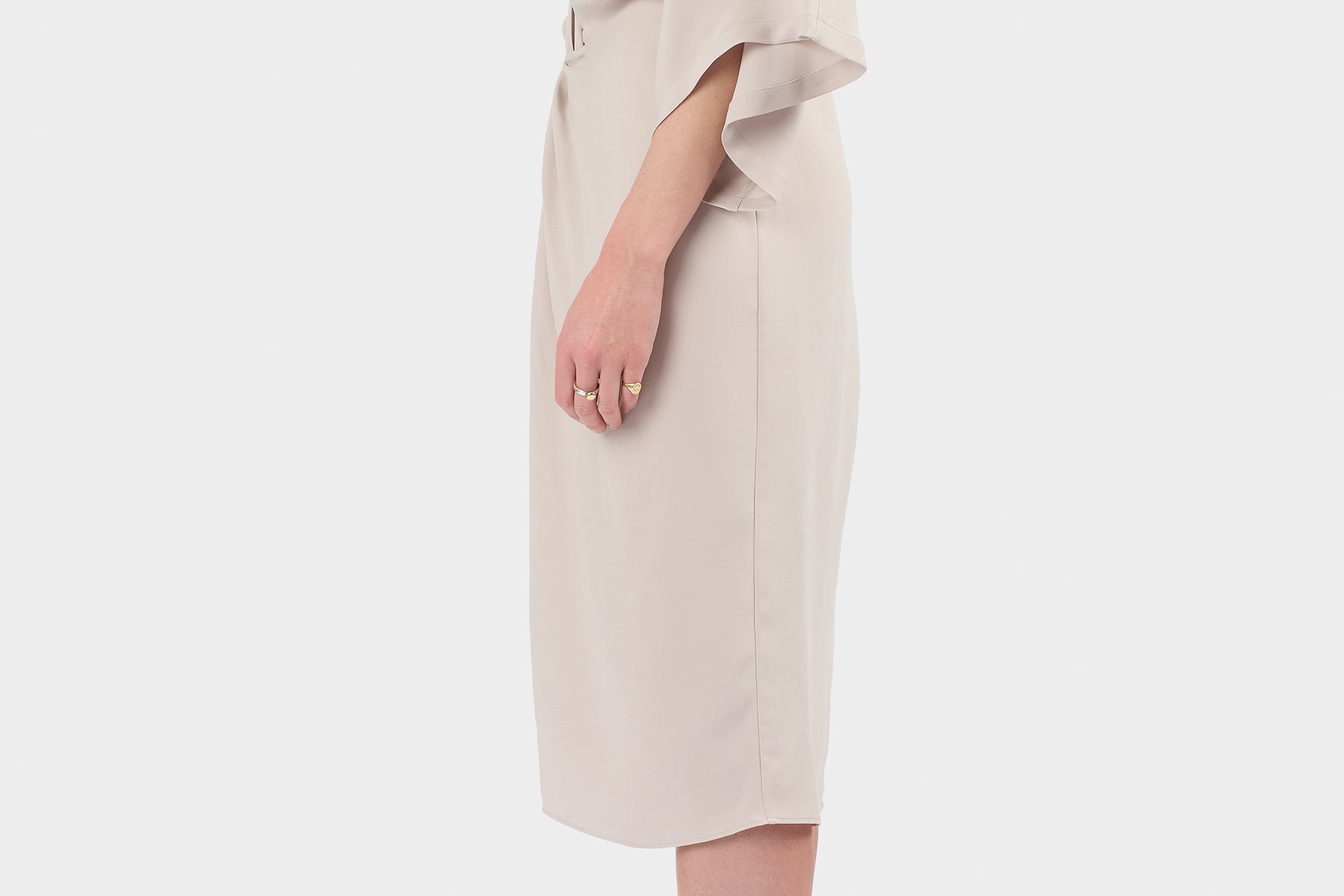 SILK GATHERED DRAPED DRESS | DARK WHITE SAND