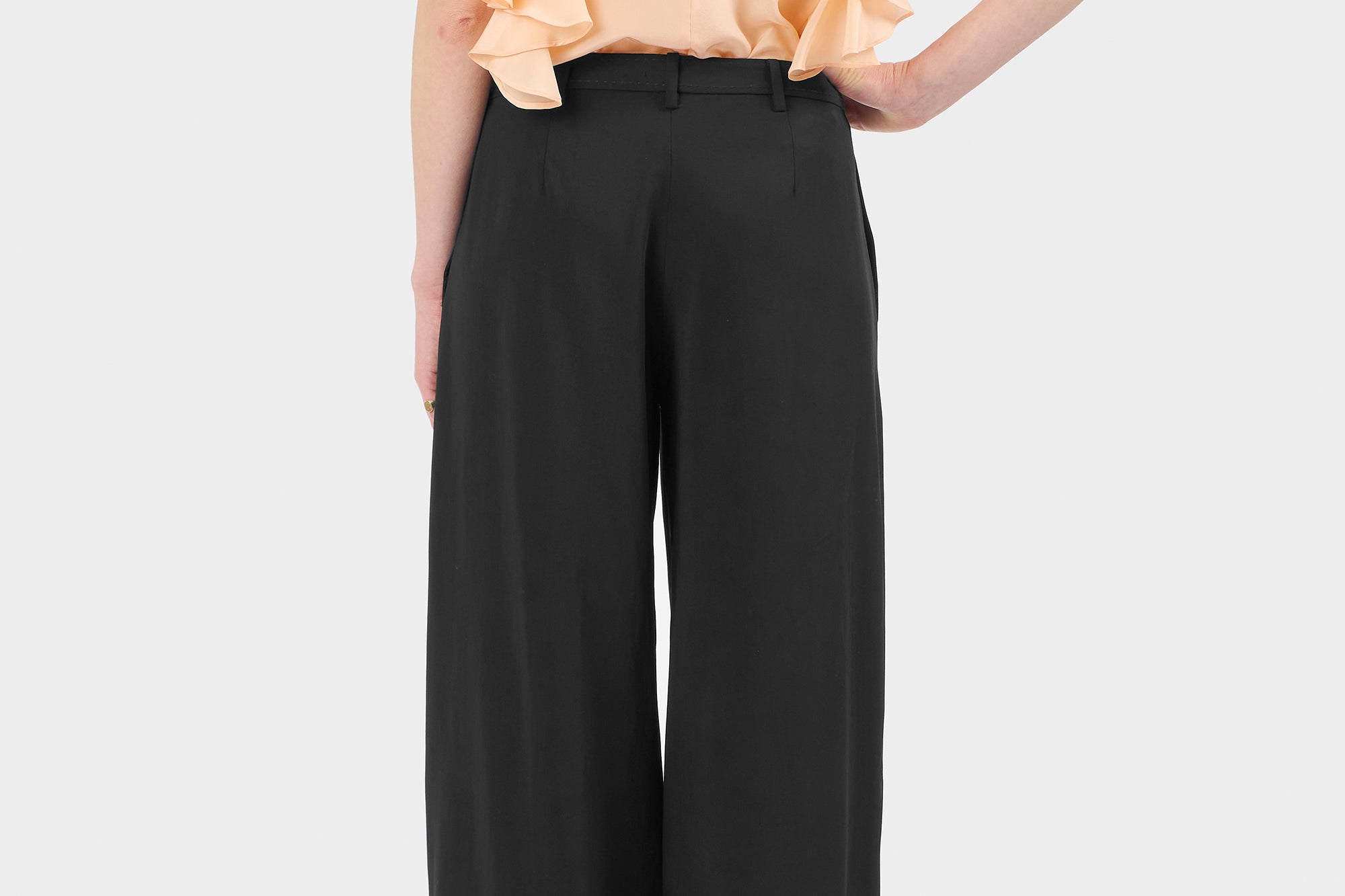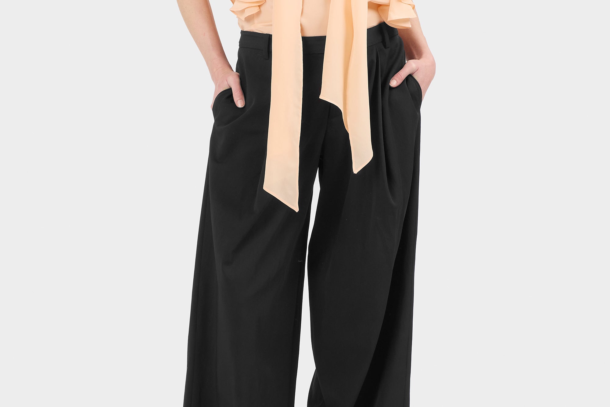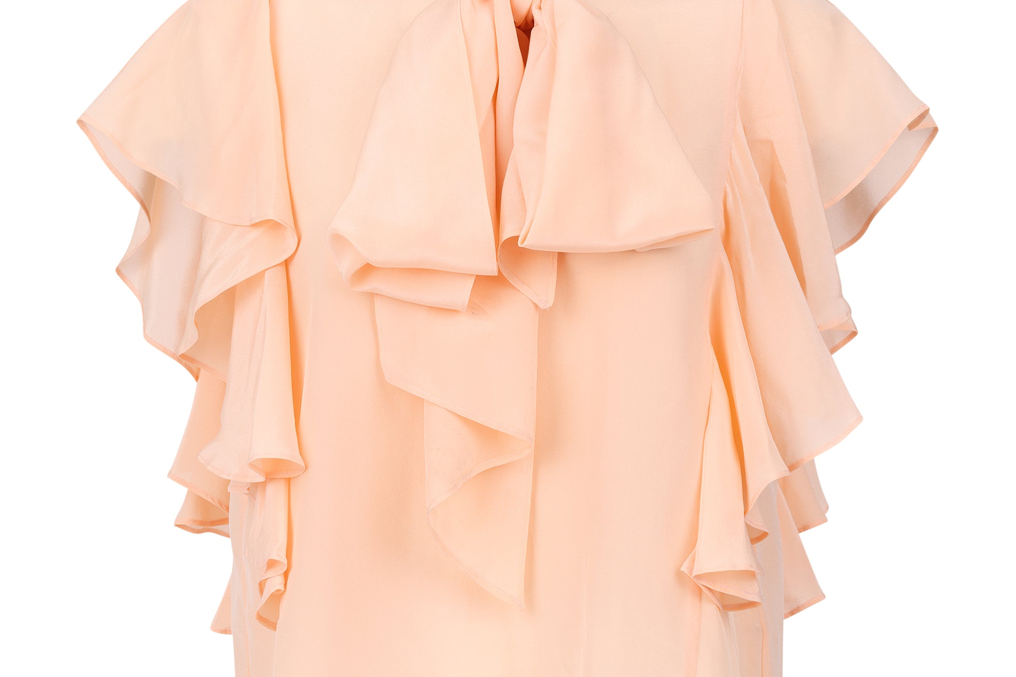 Flirty silk ruffles adorn this chic silk tee, accompanied by a removable pussy bow neck-tie.